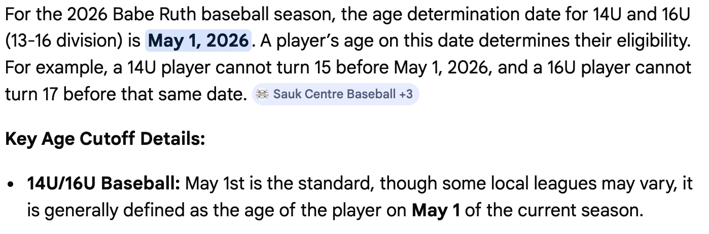 Babe Ruth Baseball is a fun summer league. Only games, no practices. Playoffs will follow at the end of the season.The full schedule will be provided by Coach Shaughnessy. Register by May 15.